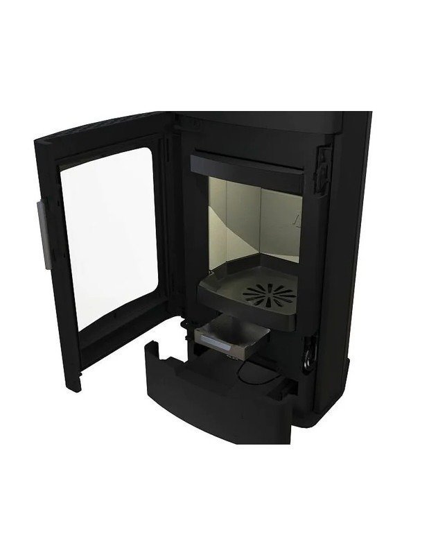 El KRETZ ECHEDO 1 destaca con una potencia térmica nominal de 7 kW, un rendimiento superior al 80 % y un diseño depurado en acero lacado negro. Calienta de manera eficiente estancias de hasta aproximadamente 70 m² y crea un ambiente cálido – perfecto para uso diario.